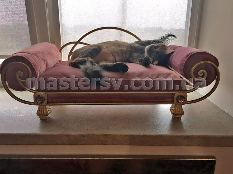 Юлиана из города Киев заказала у нас для своего домашнего любимца лежак KL-77 и подставку для мисок KL-31. После долгого согласования размеров изделий, цвета покраски ковки, ткани для лежака мы приступили к изготовлению. Кроме этого, специально для Юлианы мы разработали подставку KL-31 на 3 миски.